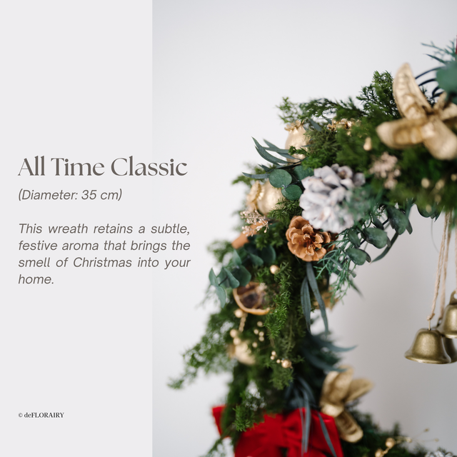 Featuring a combination of real cedar, cypress, eucalyptus, cones, poppy seed and dried fruit. This wreath retains a subtle, festive aroma that brings the smell of Christmas into your home.