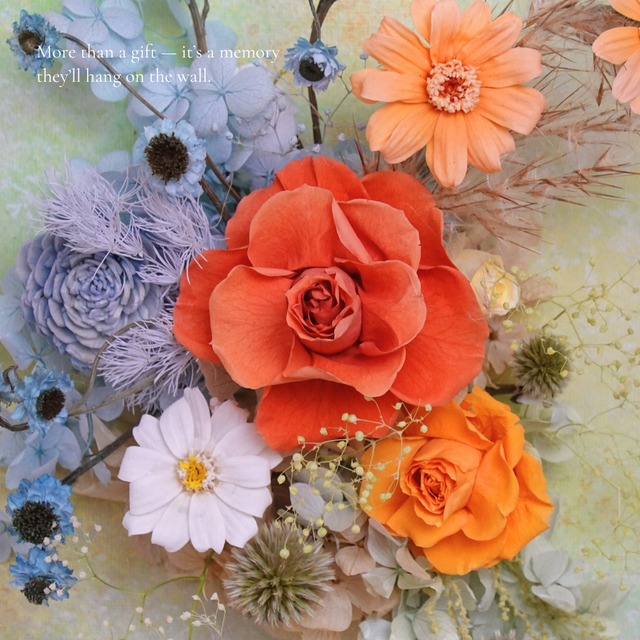 This handcrafted 3D flower canvas blends real preserved flowers with textured artistry: A soft piece of floral wall decor that stays beautiful for years. Whether you're gifting it to someone special or styling a quiet corner of your home, each canvas brings timeless calm and gentle colour to any space.