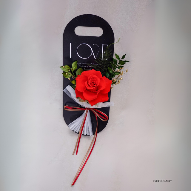 A timeless message of everlasting love: Preserved rose and foliage on a hangable card, beautifully packaged in a clear-lid box. A poetic keepsake that speaks from the heart.