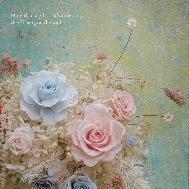 This handcrafted 3D flower canvas blends real preserved flowers with textured artistry: A soft piece of floral wall decor that stays beautiful for years. Whether you're gifting it to someone special or styling a quiet corner of your home, each canvas brings timeless calm and gentle colour to any space.