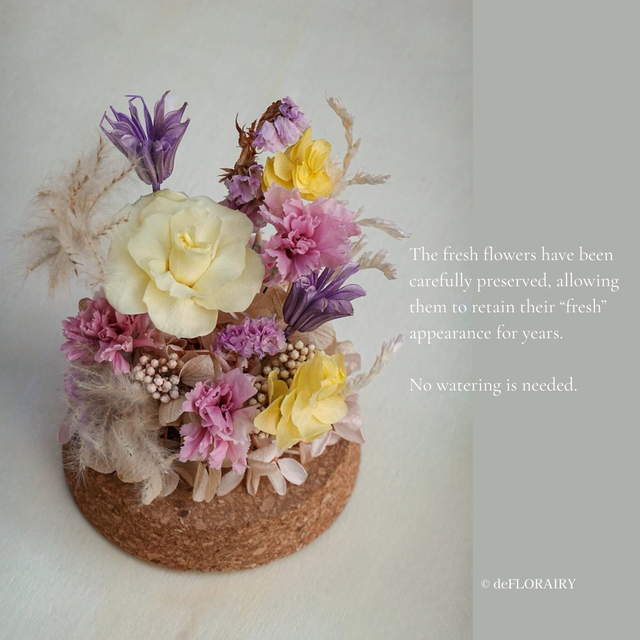 Each dome is a sealed moment: Soft floral, real preserved petals, and gentle colours made to last for years without water. Whether for birthdays, “just because,” or spaces that deserve beauty, each dome becomes a personal keepsake.